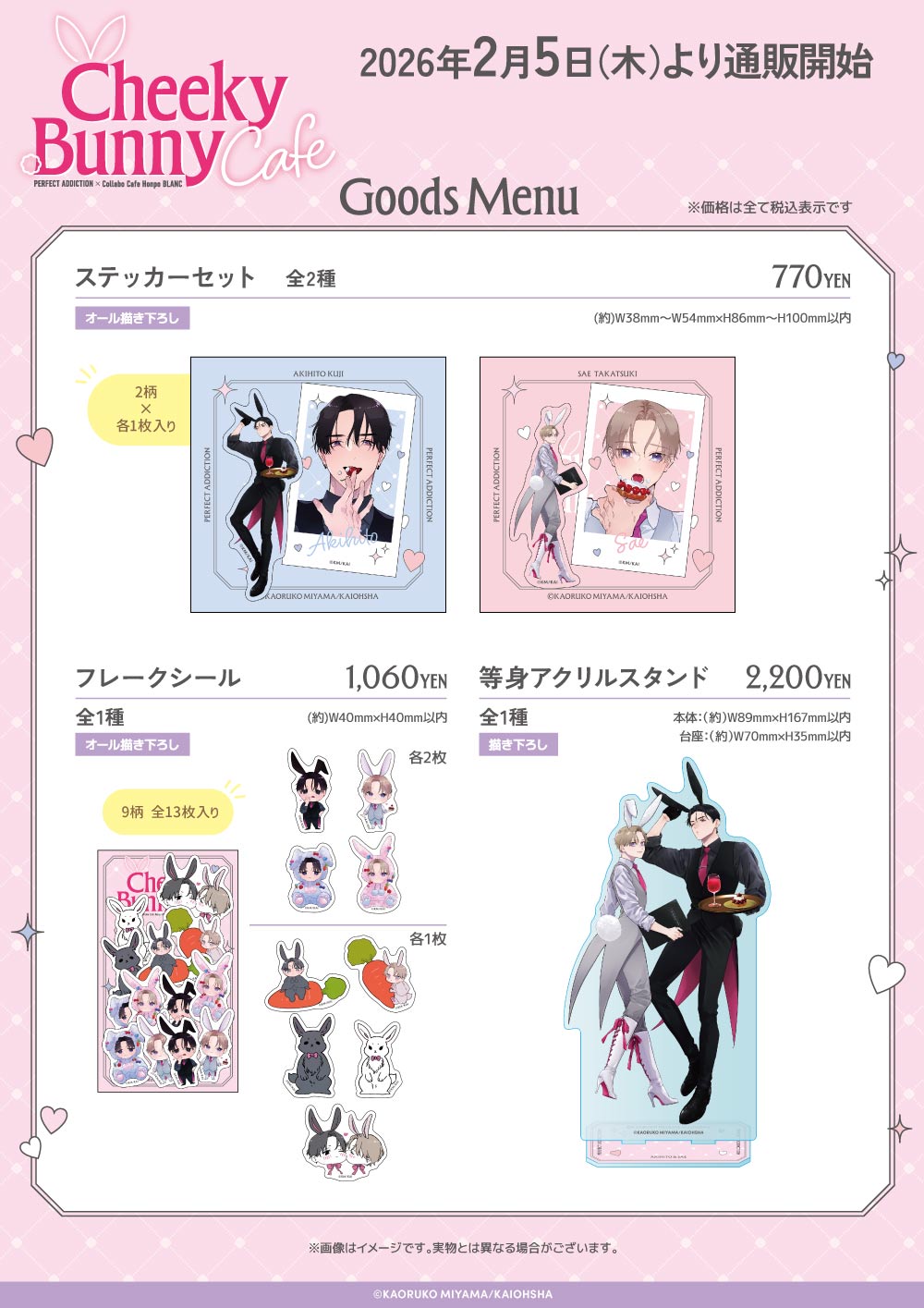 キャラクターグッズ通販サイトエイモにて、パーフェクトアディクション×COLLABOCAFEHONPO BLANC 2026 コラボ商品の通販を開始致します♪ 商品購入ページの公開は2026年2月5日(木)18:00となります! ※こちらの商品を含むご注文の発送は、2026年3月24日より順次発送予定となります。【商品紹介】