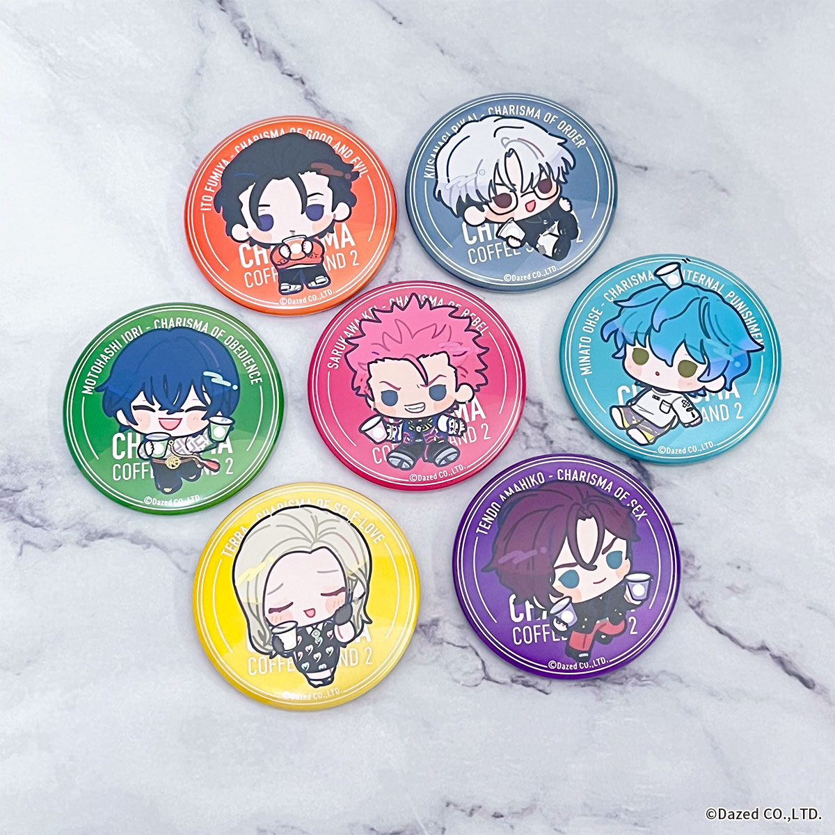 こちらの商品は、カリスマ×きゃらドリ!! BLANC 2025 トレーディングマット缶バッジ(全7種)となります。